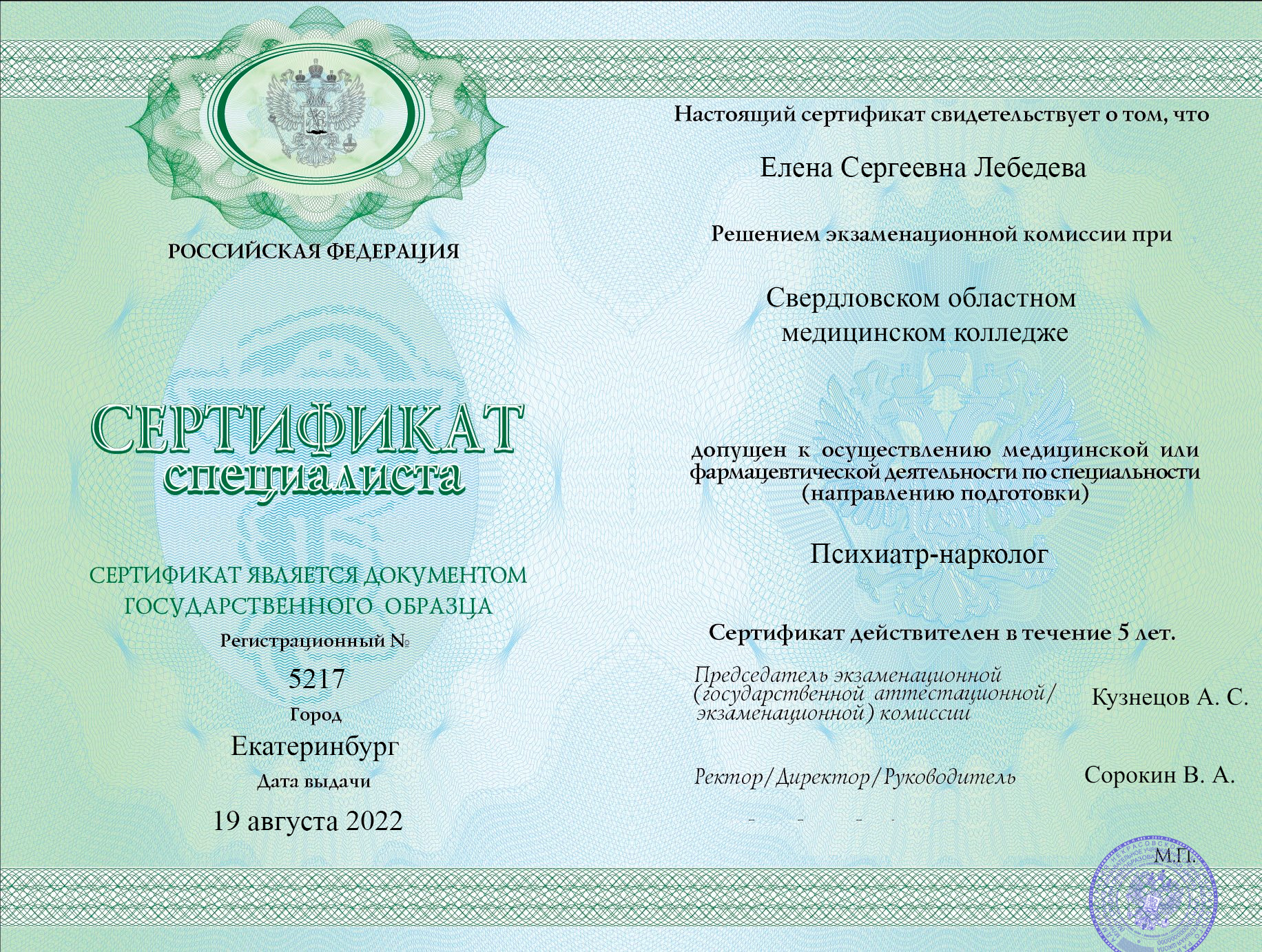 Елена Сергеевна Лебедева врач нарколог клиники доктора Стукаловой в Краматорске